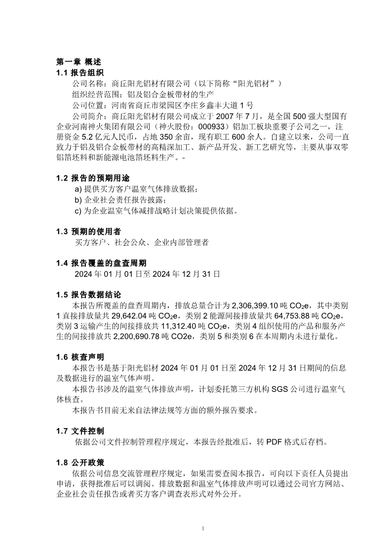 商丘阳光铝材有限公司温室气体盘查报告-2024年度