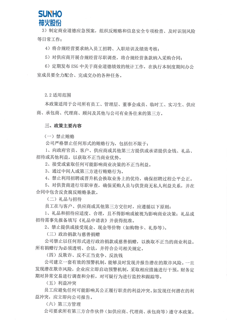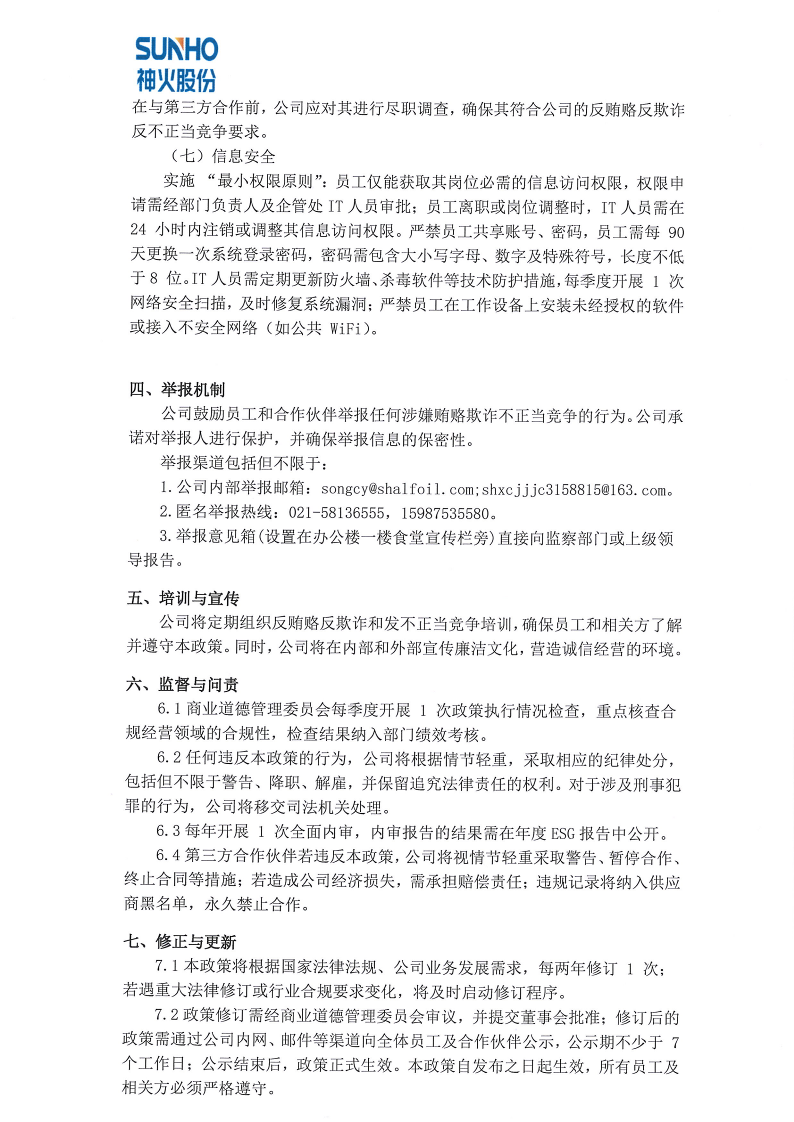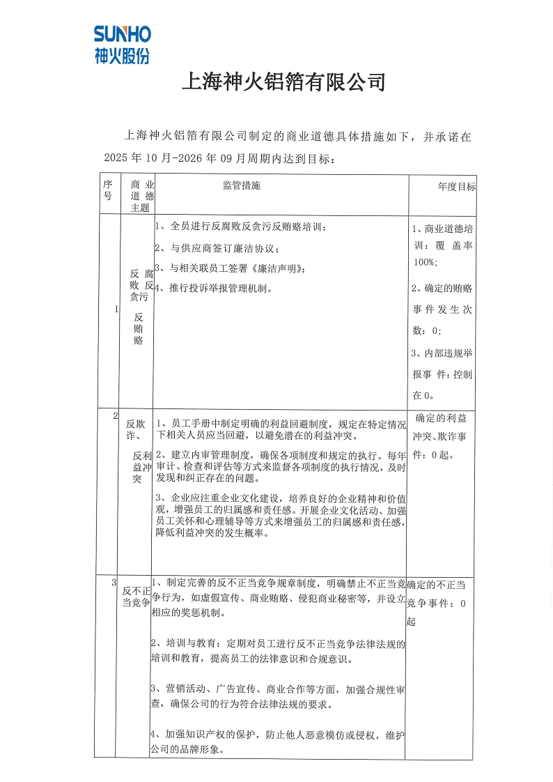 上海神火商业道德政策